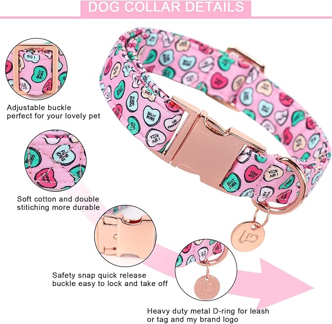 - VALENTINE COLLAR: Classic pink color pattern collar is especially suitable for daily wear. Valentine heart dog collar better shows your dog’s charm.