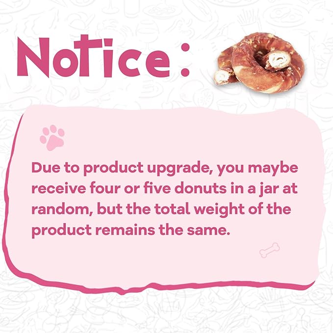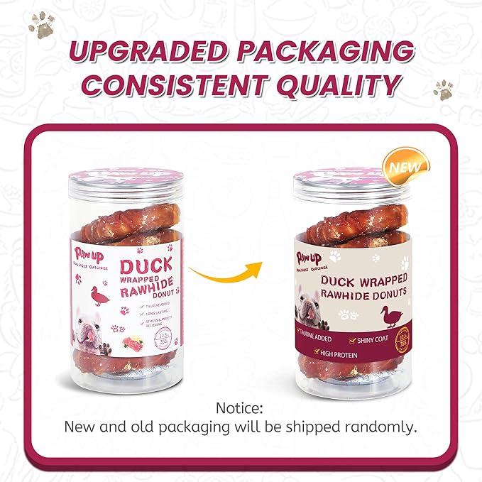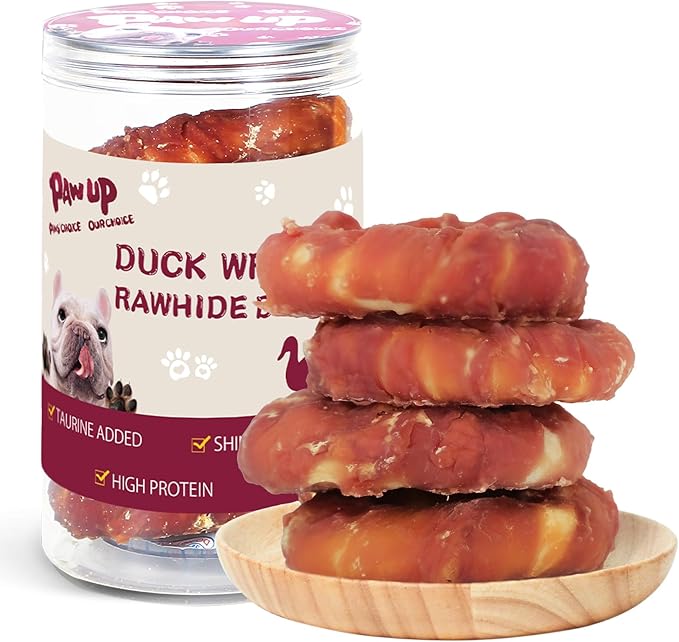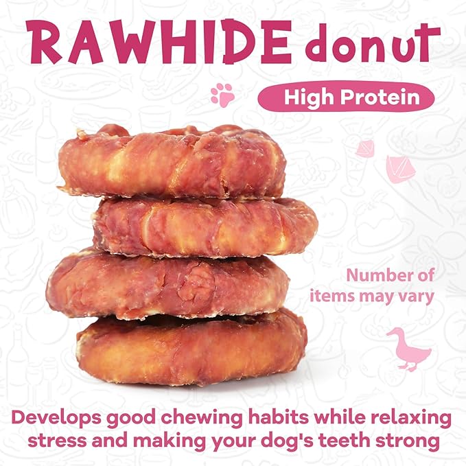 - STRESS RELIEVING:Dog Treat Duck Rawhide Donut allows a long-lasting and more fun chewing for your dogs with delicious tasting. Let your puppies relieve their stress through focusing on these nutritious chews