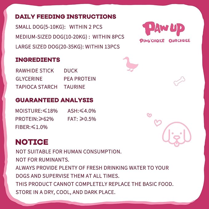 - STRESS RELIEVING: Dog Treat Duck Rawhide Stick allows a long-lasting and more fun chewing for your dogs with delicious tasting. Let your puppies relieve their stress through focusing on these nutritious chews