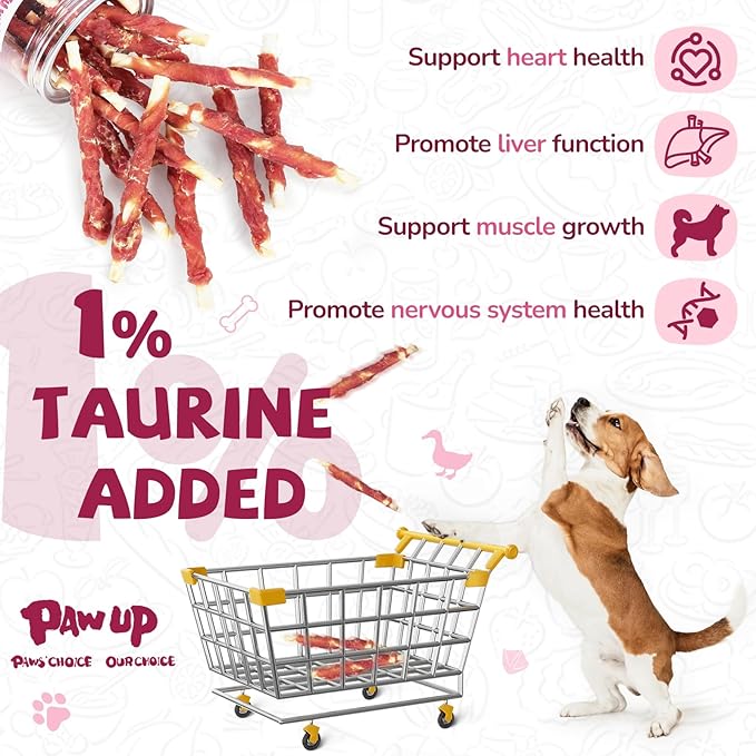 - TAURINE ADDITION: Taurine is an excellent nutrient for any age or breed.1 % taurine is added to treats, which can be directly supplemented in daily life. It has a very good effect on the heart, cerebrovascular, and retina of dogs