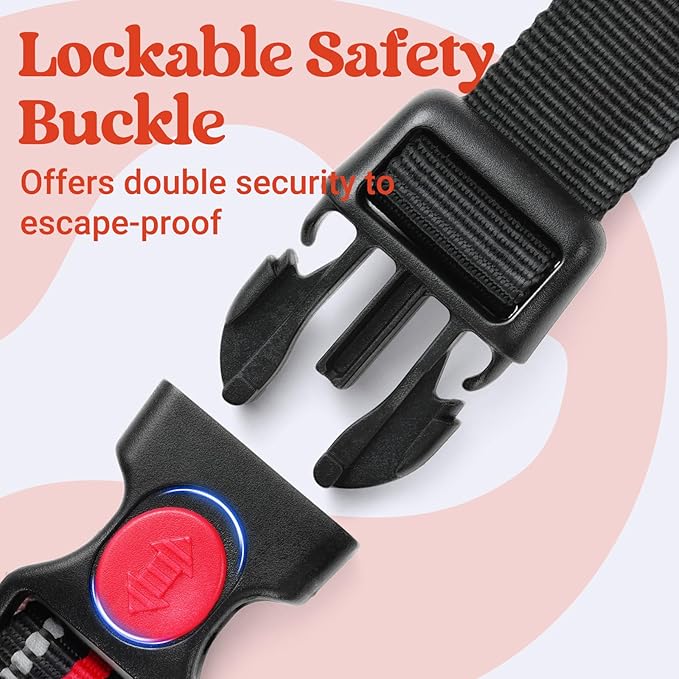 - Perfect Protection: The dog harness features sturdy and wear-resistant nylon Oxford fabric with reinforced stitching for high tensile strength. A lockable buckle at the neckline provides secure fastening, preventing accidental release under excessive force. Wide-area reflective stitching enhances visibility, making it suitable for nighttime use