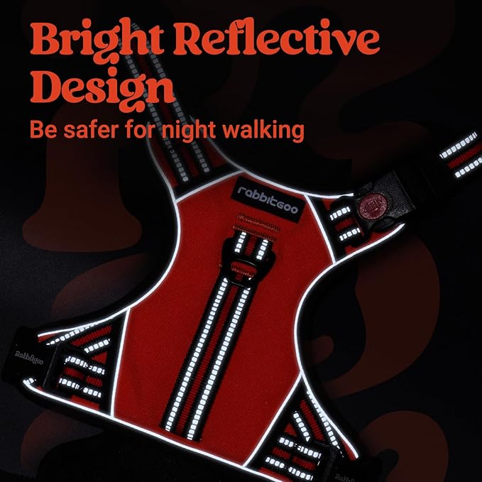 rabbitgoo Dog Harness Medium Sized, No Pull Pet Harness with Soft Padded Handle, Adjustable Reflective Vest with 3 Buckles, Easy Walking Harness with 2 Leash Clips, Red, M