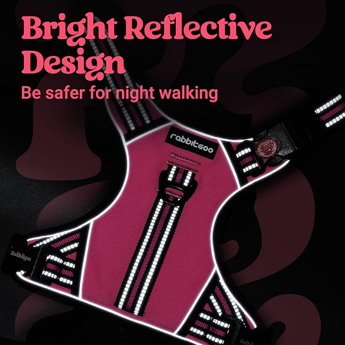 rabbitgoo Dog Harness Small Sized Dog, No Pull Pet Harness with Soft Padded Handle, Adjustable Reflective Vest with 3 Buckles, Easy Walking Harness with 2 Leash Clips, Pink, S