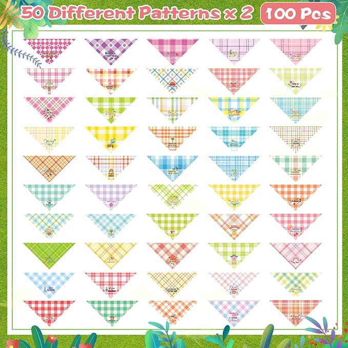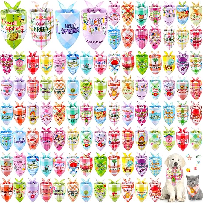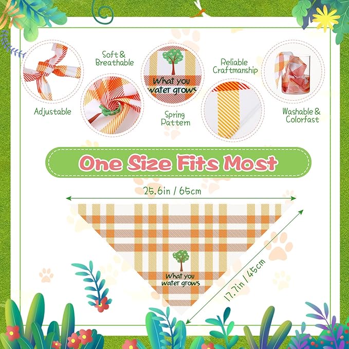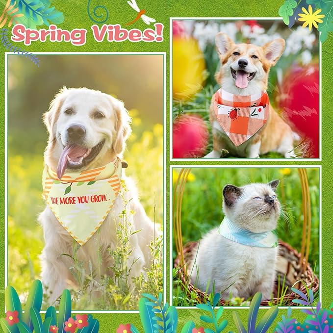 - Spring Themed Plaid Design: these dog bandanas are designed with diverse classic plaid patterns, featuring various spring themed elements and sayings, they're festive and will make your pets look special and adorable during spring season