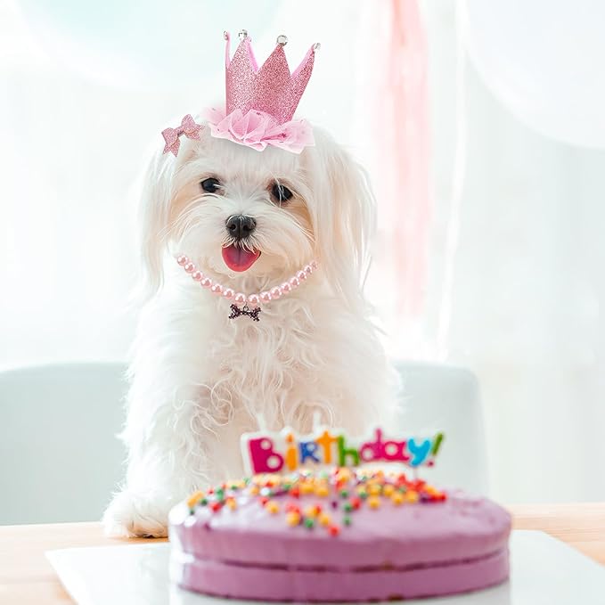 Dog Birthday Party Supplies Dog Birthday Outfit Pink Tutu for Dogs Dog Birthday Hat Necklace and Bowtie Hairpin for Dogs (24-31 inch Wrist)