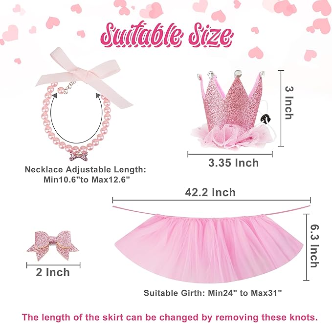 - Cute Valentine's day outfit! Perfect Dress Up: This girl dog outfits includes dog birthday hat, pink dog tutu, lovely dog necklace and bowtie hairpin, make your puppy the adorable princess for her birthday party.