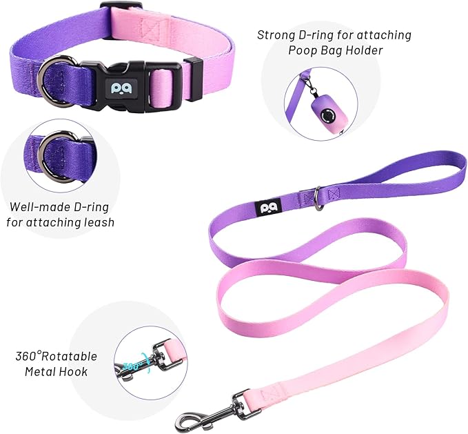 - Safe and Convenient: The 5 ft dog leash is long enough for freedom and safety for both you and your dog. The 360°rotating metal clasp prevents the leash from twisting and getting tangled. You can attach poop bag holders to the leash, which is convenient to put out a poop bag while walking the dog outside.