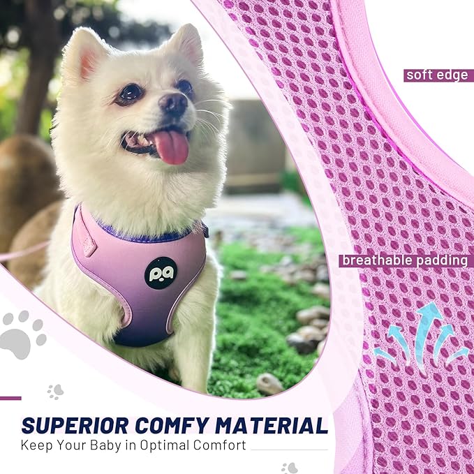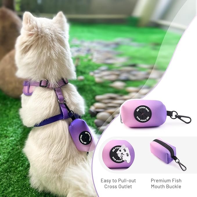QQPETS Dog Harness Collar Leash with Poop Bag Holder 4 PCS Set, Adjustable No Pull Soft Mesh Padded Vest for Small Medium Large Pet Puppy Outdoor Walking (Gradient Purple, M (Chest 17”-24”))