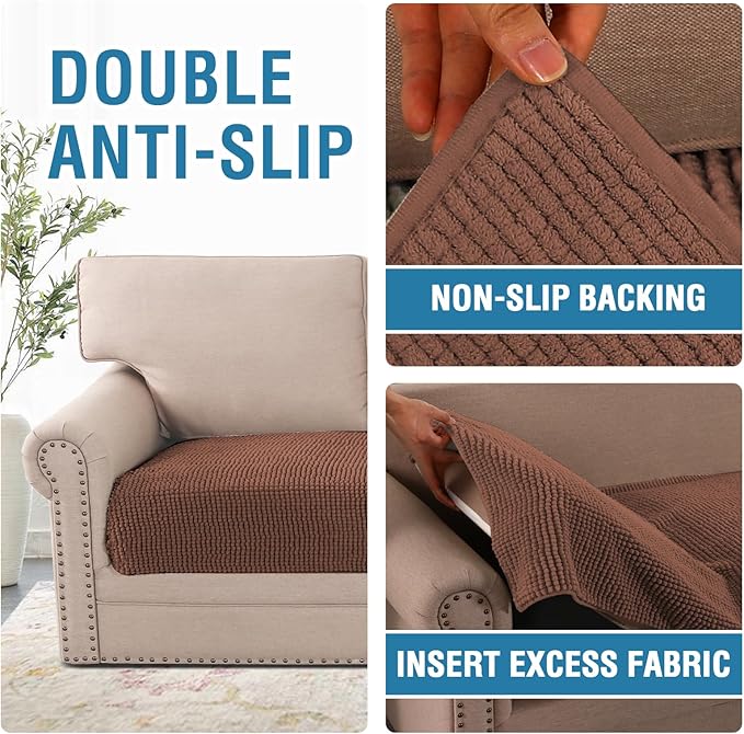 H.VERSAILTEX Plush Chenille Dog Bed Cover Thick Soft Loveseat Cover for 2 Cushion Couch Anti Slip Couch Cover Furniture Protector for Dog, Pet, Cat (35" x 62", Caramel)