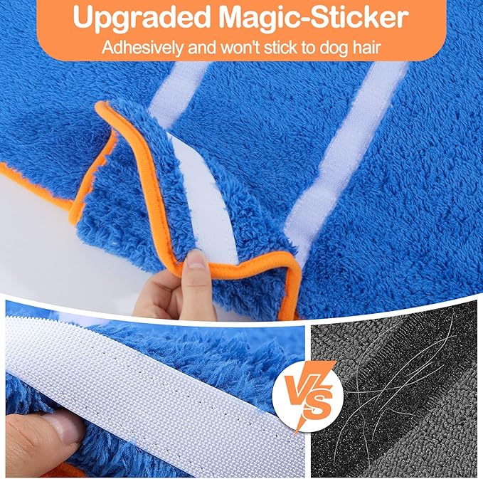 - Adjustable: Our dog towels are made of magic-sticker,it will not easy to stick dog hair, besides the sticker can make it easier for dogs to put on and take off the pet bathrobe, adjust the tightness, and make the dog bath towel more fit and comfortable