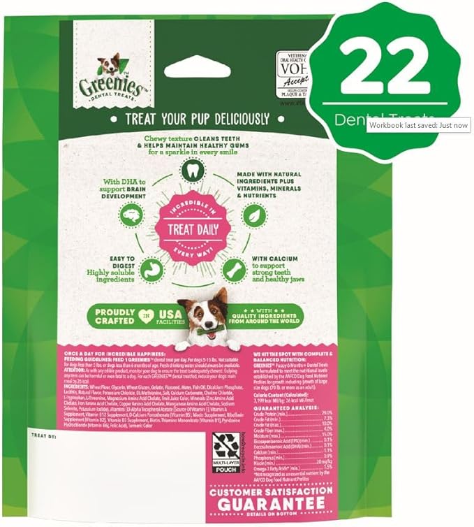 - Treat Your Pup Deliciously: These incredibly tasty puppy dental treats are Made with natural ingredients plus vitamins, minerals and nutrients. Give your pup one dental treat a day for incredible happiness