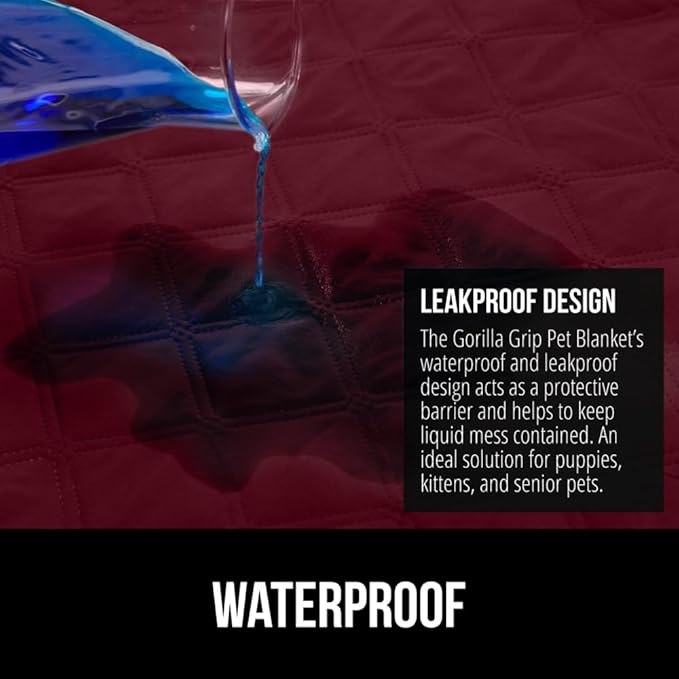 GORILLA GRIP Waterproof Dog Bed Cover, Pet Blanket for Furniture, Sofa, Couch, Crate, Car, Sofa Throw Essential for Cats and Dogs, Tear and Slip Resistant Leakproof Cushion Cover, 30x70 Burgundy