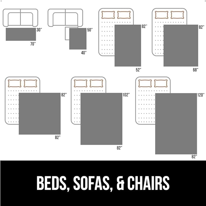 - BEDS, SOFAS, AND CHAIRS: blanket measures 82” x 82”; available in many sizes for all spaces; sizing aligns with bed and sofa sizing for a perfect fit; machine wash and dry