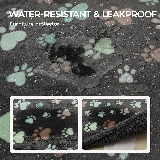 - WATERPROOF DOG BDE BLANKET- Featuring soft thick fleece on one side and plush sherpa backing on the other, our pet blanket ensures ultimate comfort and warmth for your furry friends. The internal waterproof lining provides reliable defense against spills and accidents, preventing liquids from seeping through. (Note: The surface of the fiber itself is not waterproof.)