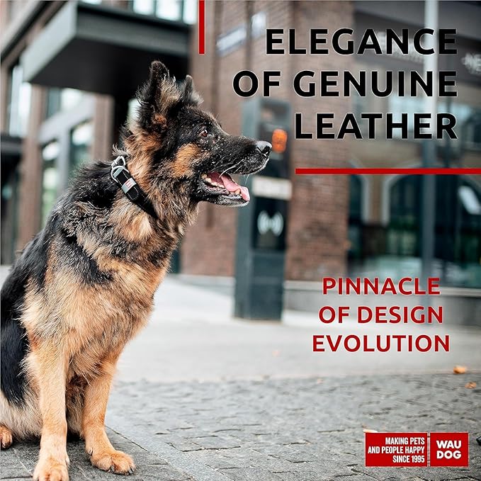WAUDOG Long Lasting Leather Dog Collar for Large Dogs, Medium & Small Dogs - Adjustable Classic Puppy Collars for Large Breed Dogs - Boy & Girl Dog Collars with Durable Buckle, D-Ring & QR Dog Tag