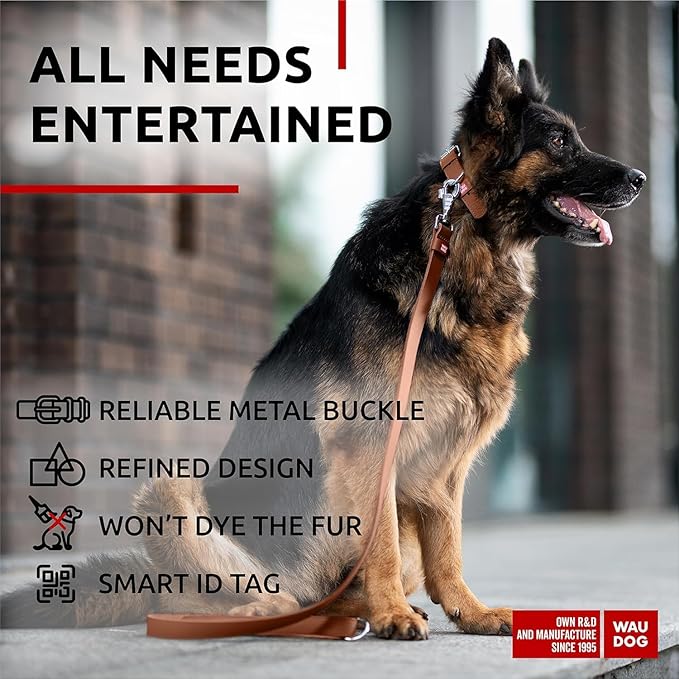 WAUDOG Long Lasting Leather Dog Collar for Large Dogs, Medium & Small Dogs - Adjustable Classic Puppy Collars for Large Breed Dogs - Boy & Girl Dog Collars with Durable Buckle, D-Ring & QR Dog Tag