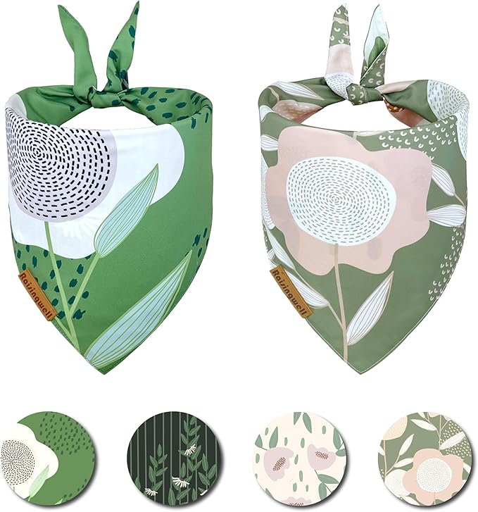 - 【Four flower patterns】 Four Floral patterns to choose from: Green Blossom, Bloom with grace, Green insect and Pink Blossom .Perfect for holiday bandanas for dogs, this is a uniquely featured green dog bandanas.