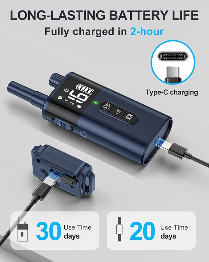 - Dual USB-C charging cables can charge both the remote and the collar at the same time, a full charge only takes about two hours. Battery life is up to 20 days for effective, uninterrupted training. If you want to travel or camp with your dog, the long-lasting battery life provides greater convenience.