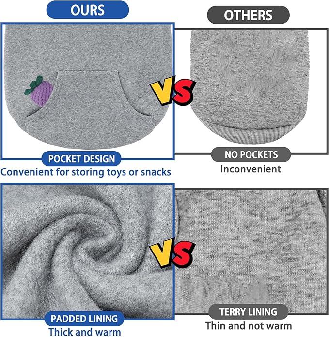 - DOG HOODIES WITH POCKETS: Our dog hoodies feature a classic solid color design that exudes timeless charm and sophistication. The addition of functional pockets enhances its usefulness, giving you and your furry friend a convenient place to store toys or treats for interactive playtime.