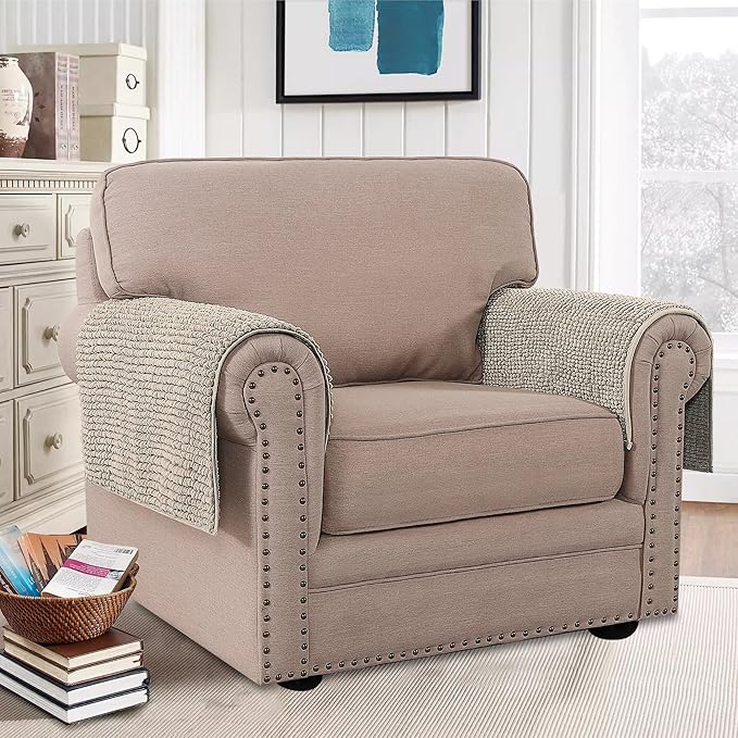 H.VERSAILTEX Plush Chenille Couch Armrest Cover 2 Packs Thick and Soft Sofa Covers Furniture Protector Cover for Pets (27.5" x 27.5", Island Fossi)