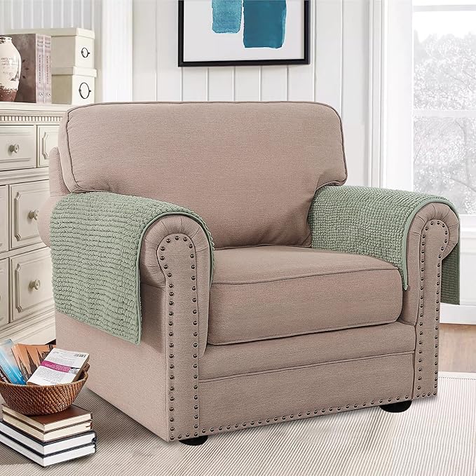 H.VERSAILTEX Plush Chenille Couch Armrest Cover 2 Packs Thick and Soft Sofa Covers Furniture Protector Cover for Pets (27.5" x 27.5", Sea Foam)