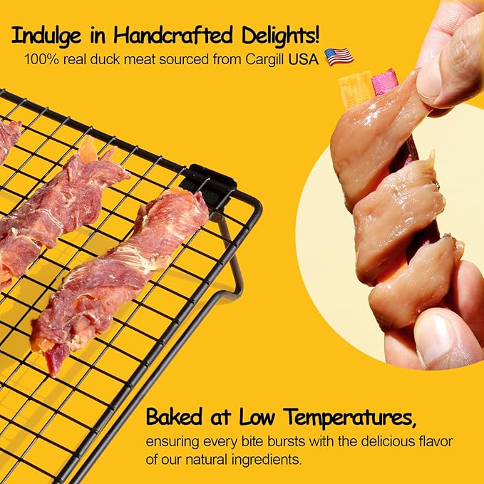- ALL-NATURAL DOG TREATS : 100% real duck meat is baked at low temperature to obtain fresh and delicious flavor, flavorful and tempting snacks. Reduces protein destruction from heat, so every dog gets nutritious meat. No Wheat, corn, and soy-free recipes, and never, ever any artificial ingredients or preservatives.