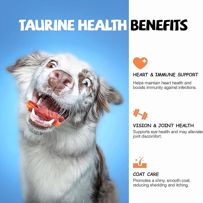- ENRICHED WITH TAURINE : taurine is essential for your dog's heart and cardiovascular system. Added in small amounts to dog treats which helps with heart and cardiovascular health. It also contributes keep dogs’ vision sharp. You were all over his/her bright, sparkling eyes