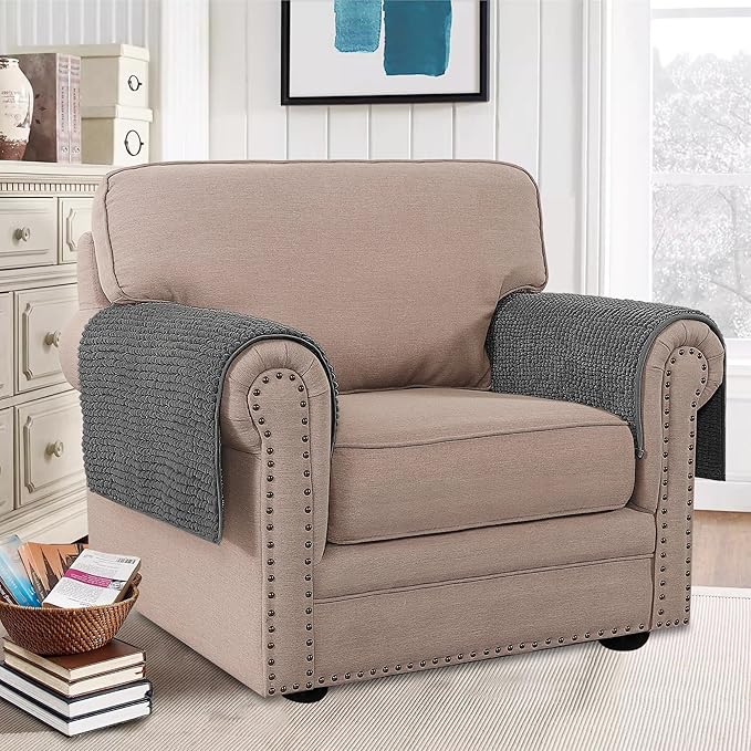 H.VERSAILTEX Plush Chenille Couch Armrest Cover 2 Packs Thick and Soft Sofa Covers Furniture Protector Cover for Pets (27.5" x 27.5", Grey)