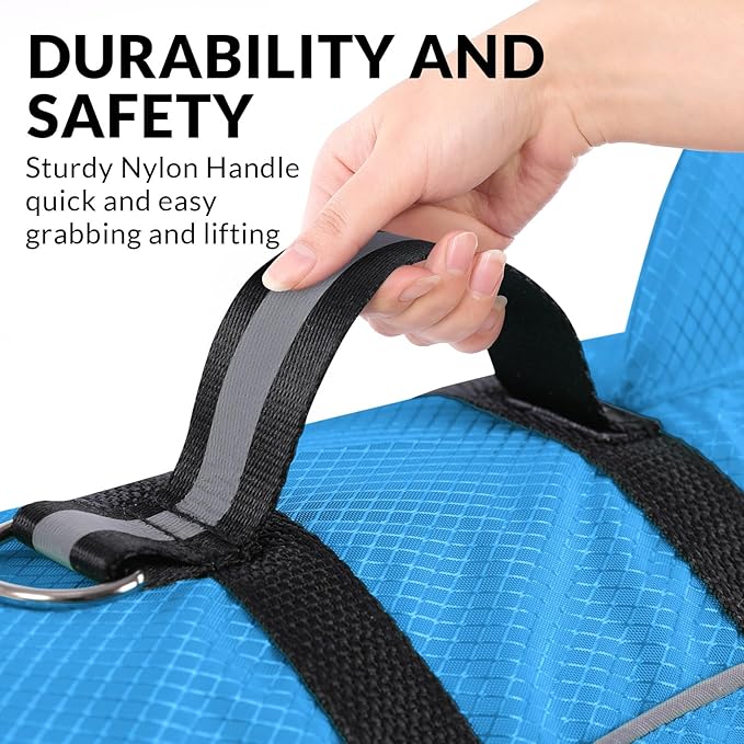 - Functional Dog Life Jacket for Swimming: The dog swimming vest features high buoyancy, strong rescue handle, reflective strap on handle, lightweight and strong hook to use dog leash.