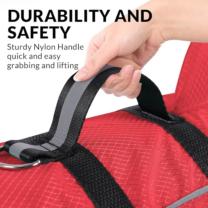 - Functional Dog Life Jacket for Swimming: The dog swimming vest features high buoyancy, strong rescue handle, reflective strap on handle, lightweight and strong hook to use dog leash.