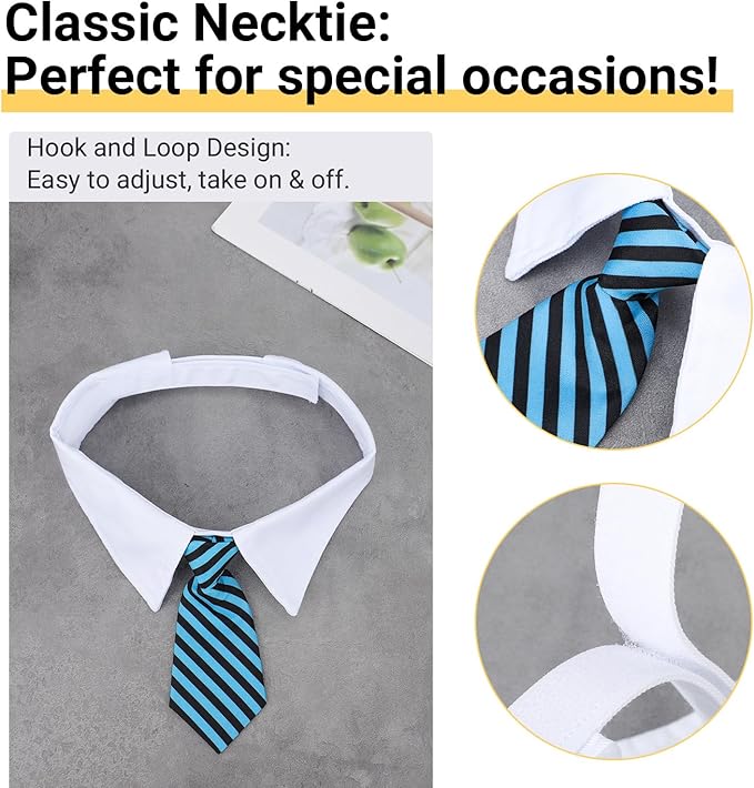 - Effortless Wear and Adjustment: Our neck tie for dogs feature a sturdy and adjustable tape closure system, ensuring a perfect fit for your furry friend. Easily customize the length of the bow tie or necktie to suit your pet's comfort and style.