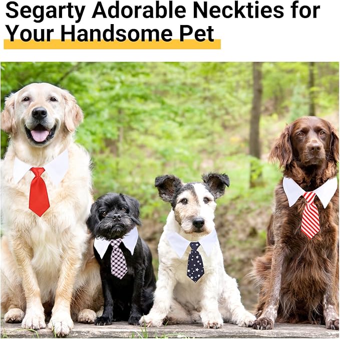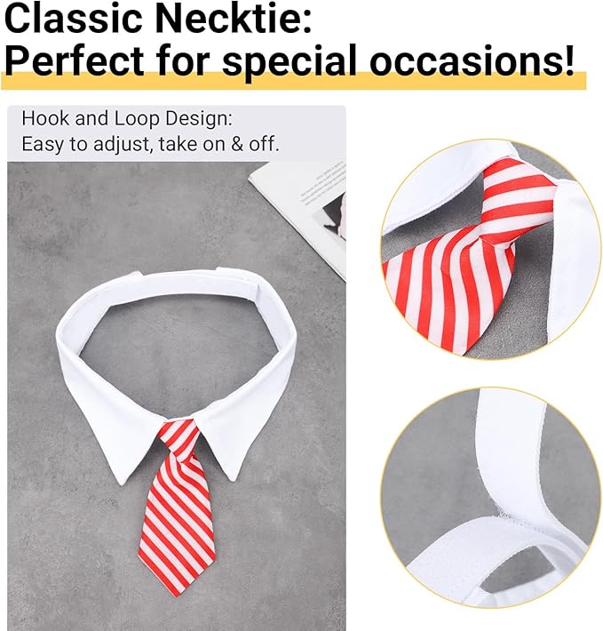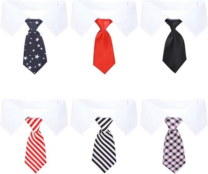 - Nice Variety of Colors: Enhance your pet's wardrobe with our set of six exquisite neckties. Choose from a spectrum of colors including solid red, solid black, pink and black pattern, white and red stripes, white and black stripes, and black with white stars to match any occasion or mood.