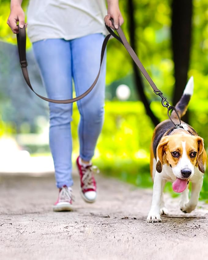 - DUAL HANDLES SOFT PADDED: Soft Neoprene and padded handle, Utilize the standard handle for casual walks and loose leash walking; The traffic handle near your dog's collar guides your pup through crowded areas with ease