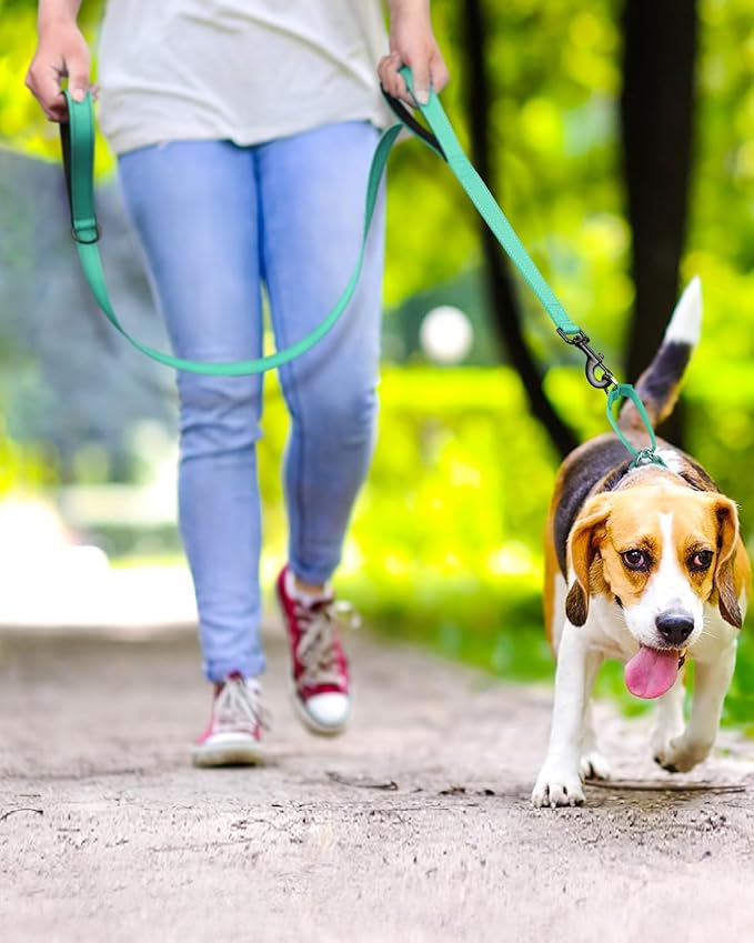 - DUAL HANDLES SOFT PADDED: Soft Neoprene and padded handle, Utilize the standard handle for casual walks and loose leash walking; The traffic handle near your dog's collar guides your pup through crowded areas with ease