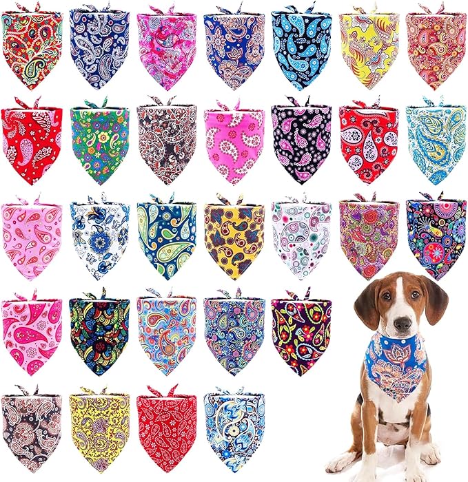 - Package:30 different Paisley patterns,carefully selected and designed,HD print one side.Classic Paisley design,make your dog fashionable and attractive.Can washable many times,not easy for bacteria to breed,suit for girl boy dogs,cats and other cute furry pets.