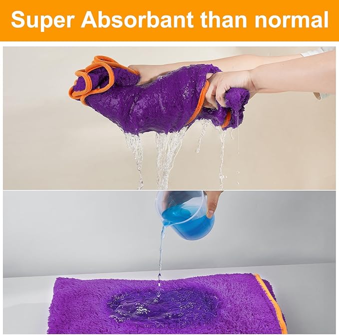 - Quick Drying: This dog bath robe is different from other normal robe; The fabric is made of long soft fleece, the water absorbent is 2 times stronger than ordinary one; It can dry dog hair faster
