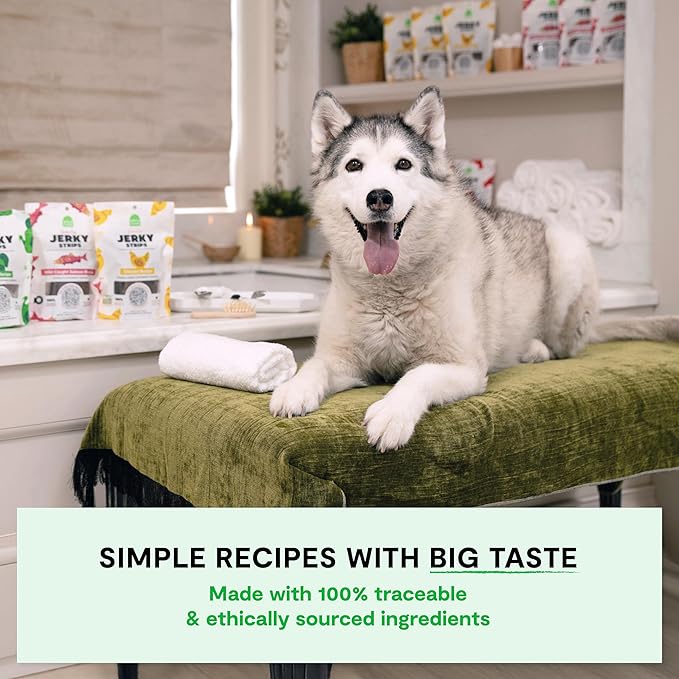 - Simple Recipes With Big Taste - Our grain-free jerky strips are made with 100% traceable & ethically sourced ingredients to combine high protein dog food with wholesome snacks for dogs.