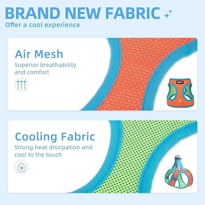 - [REFLECTIVE, SOLID PATTERN] - This Harness has two sides of reflective straps, so if you walk with your dog at night, then both of you will be safer! In addition, our stylish harness in bright colors will make your dog stand out on summer camps, beach photoshoots, picnics, walks, and hikes, all while keeping them cool.