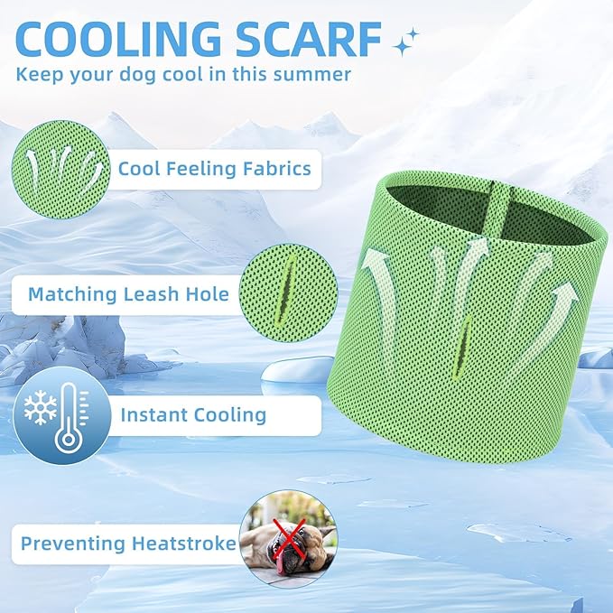 - [DOG HARNESS, COLLAR & LEASH] - The package includes three items, a walking harness, a scarf collar, and a 4.9ft matching leash. The scarf collar is made of cooling, breathable and heat-dissipating fabric, the leash is equipped with a 360-degree rotation metal hook, and the harness is adopted with a quick-release buckle and double D-rings which are very heavy-duty. You don't need to spend extra time looking through other accessories, this is a very cost-effective set.