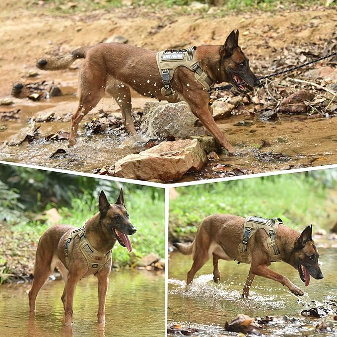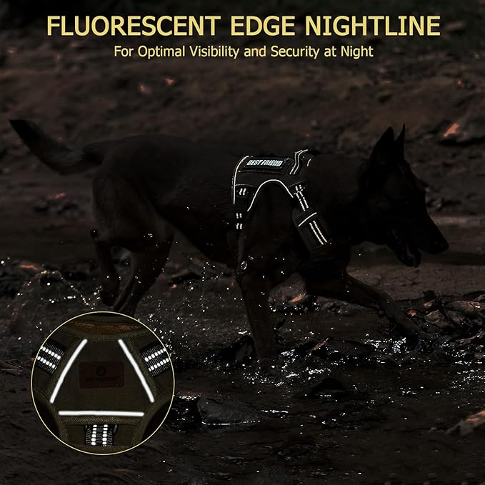 - MOLLE System: Featuring multiple Hook & Loop panels and additional MOLLE straps, our tactical harness can carry a variety of equipment, including pouches, water bottles, and tactical dog gear. It's versatile for personal service, law enforcement, hunting, or outdoor adventures. This system also shows your dog's personality; the package includes an extra "BEST FRIEND" label for customization.