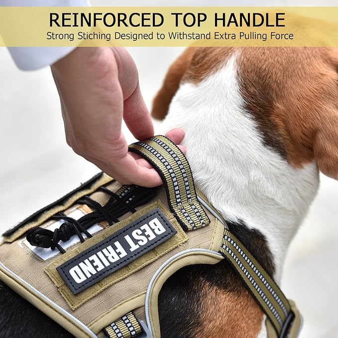 PET MARVEL Tactical Dog Harness for Medium Size, No Pull Military Dog Vest with Easy Control Handle, Molle Hoop & Loop, Adjustable Reflective Reinforced Stich for Walking Training, Brown