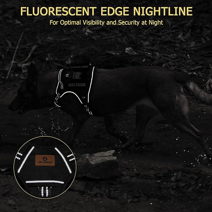 - Safety Reflective Strip: The harness is designed with a prominent reflective strip, ensuring your dog is highly visible and safe during evening strolls. This reflective feature is integrated throughout the harness, providing 360-degree visibility to alert both pedestrians and vehicles, thereby enhancing safety for your dog in low-light conditions.