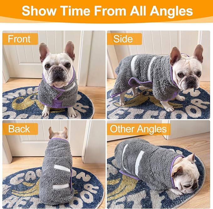 - Adjustable: Our dog towel use adjustable superior quality magic-sticker, which is not easy to stick to dog hair, and the magic-sticker design also allows dogs to put on and take off pet bathrobes more easily, adjust the tightness