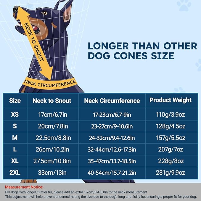 - Adjustable Dog Surgery Collar: Adjustable Velcro lets you create a custom fit for your dog. Suitable for different ages or sizes of dogs, Meet your different needs. Please refer to our sizing chart to ensure you get the right size pet soft cone to keep your pet comfortable!