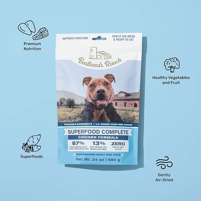 Superfood Complete, Air-Dried Adult Dog Food - High Protein, Zero Fillers, Superfood Nutrition by Katherine Heigl (24 oz., Premium Chicken)