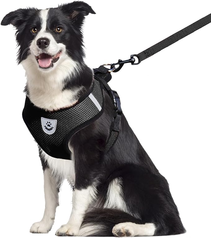 shudyear Dog Walking Chest Harness and Leash, Anti-Escape Adjustable Soft Mesh Dog Leash and Harness Set for Small Dog and Puppies, Vest for Medium Sized Dogs (Black, XL)
