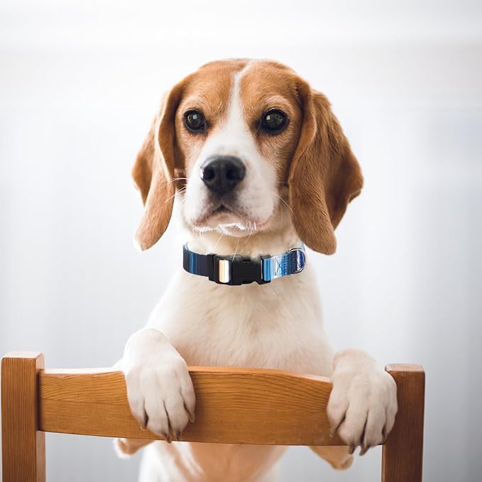 Dog Collars for Large Dogs with Cute Blue Stripes Design for Boys Dog, Adjustable Soft Pet Collar for XS Small Medium Large Dogs (L)