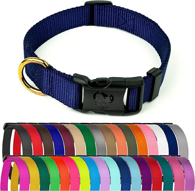 Country Brook Petz - American-Made Dog Collar for Large, Medium, and Small Dogs and Puppies - Deluxe Heavy Duty Nylon in 33 Dazzling Colors (Large, 1 Inch Wide, Navy)