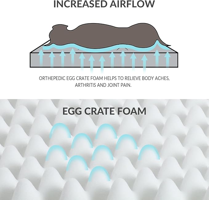 - Orthopedic Support: The dog bed is specially designed with 3.5 inches high-density egg crate foam to provide your furry friend a restful sleep and great pressure relief to reduce joint pain and arthritis discomfort