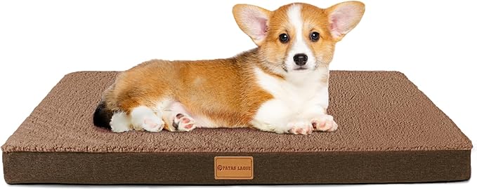 Patas Lague Orthopedic Dog Bed for Small Dogs, Soft Comfortable Waterproof Egg Crate Foam Small Pet Beds Mat with Removable Washable Cover, 20''X15'' Brown